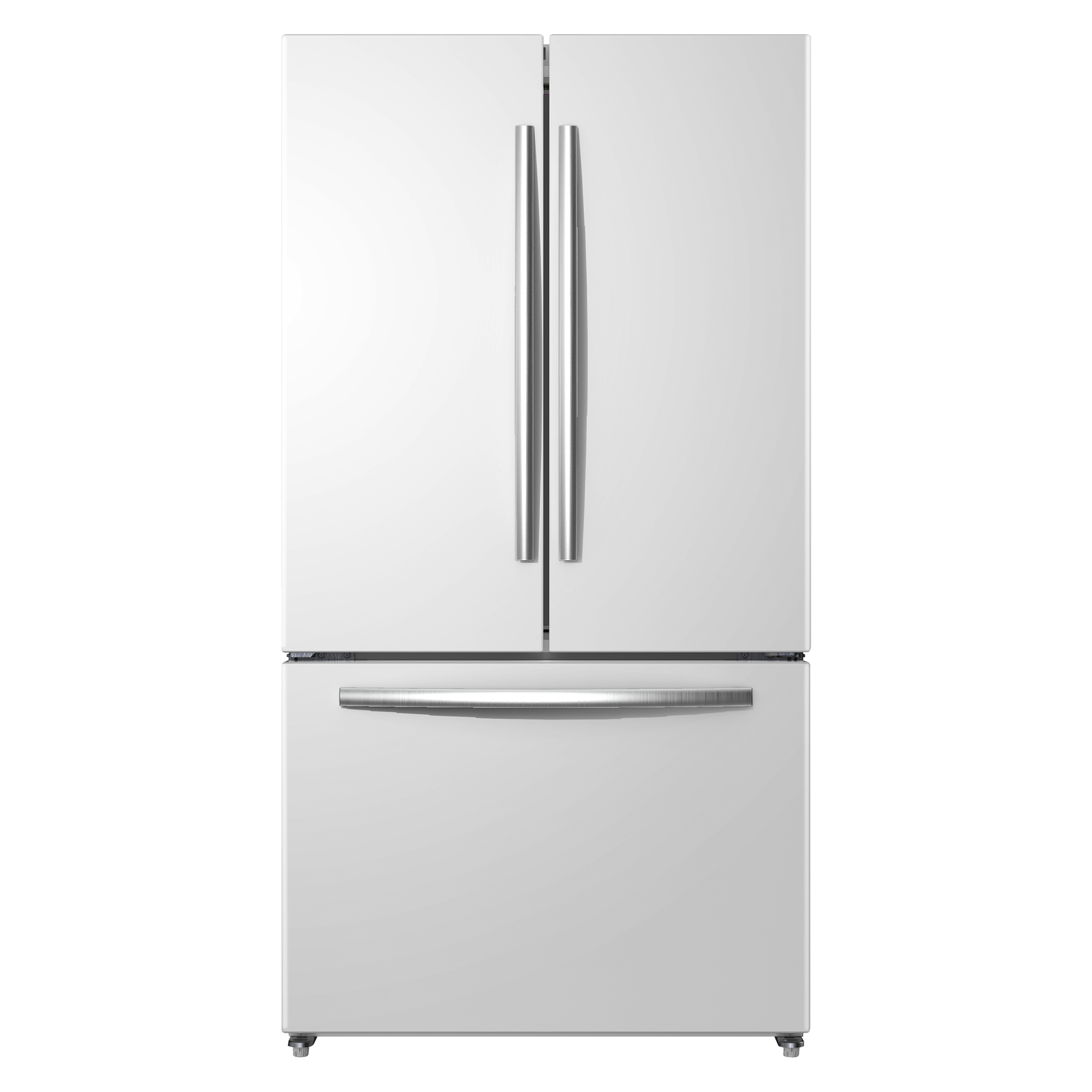 The MORA 26.6 cu. ft. Standard Depth French Door Refrigerator (Model: MRF266N6CBE) is designed to seamlessly fit into any kitchen space and decor. It features a full-width pantry drawer for ample storage of fruits and vegetables, gallon door storage for quick access to frequently used items, and two humidity-controlled drawers to keep produce fresh. The built-in ice maker in the freezer compartment delivers up to 3 lbs. of fresh ice, and an internal filtered water dispenser provides fresh-tasting water directly from the refrigerator.Brand