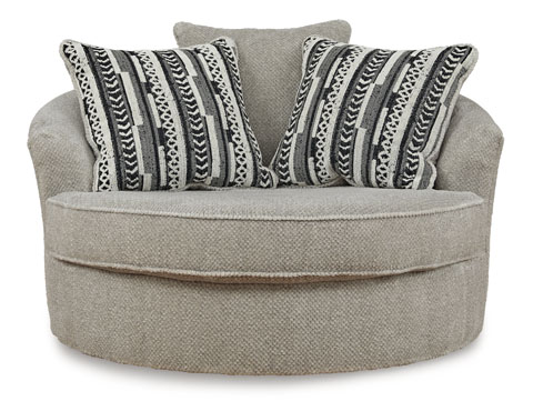 The Calnita Oversized Swivel Accent Chair caters to your need for contemporary comfort. Large in scale and decked out in feel-good fabric, it gives you space to sprawl out. The 360-degree swivel motion makes it easy to view the TV or chat with others in your seating area. Quality time has never been so cozy.Brand