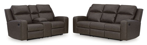 The Lavenhorne 2-Piece Reclining Sofa and Loveseat Set combines contemporary design with exceptional comfort. Upholstered in heavyweight padded faux leather with contrast jumbo stitching, the set features sleek track arms for a modern touch. The sofa includes a drop-down table with dual cup holders and USB charging ports, while the loveseat offers a center console with additional cup holders. Both pieces have dual-sided reclining mechanisms (with stationary middle seats), pull-tab reclining motions, and are built with corner-blocked frames and metal-reinforced seats.Brand