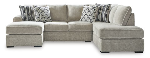 The Calnita 2-Piece Sectional with Chaise combines contemporary design with exceptional comfort. This sectional includes a left-arm facing corner chaise and a right-arm facing sofa chaise, providing ample seating and lounging space. It features a corner-blocked frame for durability, reversible seat and attached back cushions filled with high-resiliency foam wrapped in thick poly fiber, and soft polyester upholstery.Brand