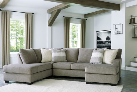 The Creswell 2-Piece Sectional with Chaise is a generously scaled seating solution designed for optimal comfort and style. This double chaise sectional features luxurious upholstery that pampers you from head to toe, complemented by a collection of coordinating accent pillows for added indulgence.Brand