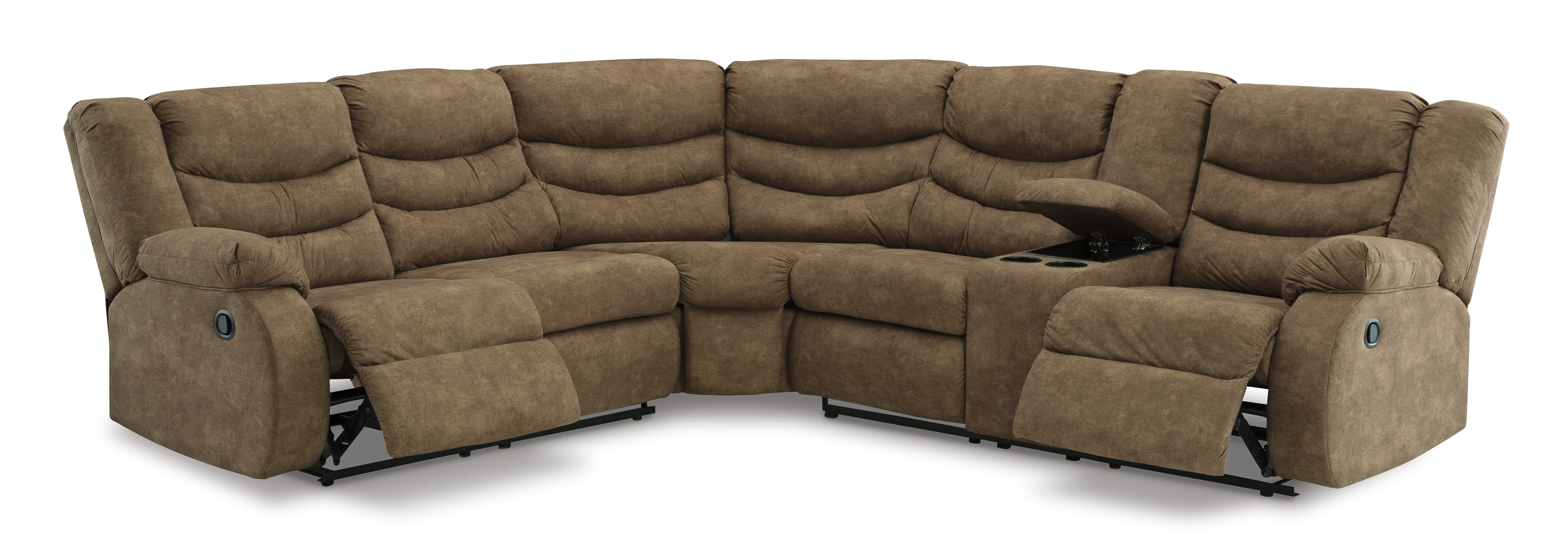 Affordable luxury made easy. An essential for living room lounging, this set is a star in social spaces. Its warm brown faux leather is well-suited for mixing and matching with your existing pieces. Pull tab reclining keeps you and your companions covered when it comes to comfort. And this functional piece is equally as fashionable, with design details like a channel-stitched back incorporating subtle visual interest.Brand
